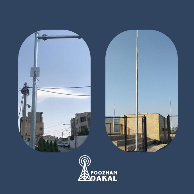 | مشخصات فنی اصلی | ارتفاع معمول ۲۰ تا ۶۰ متر (تا ۸۰ متر در پروژههای خاص)، ساختهشده از لوله فولادی با پوشش ضدزنگ یا گالوانیزه. |